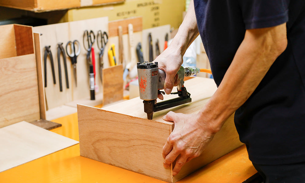 当社は工場内に木工作業場を所有し、木枠を作るところから生産しています。